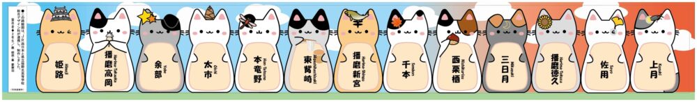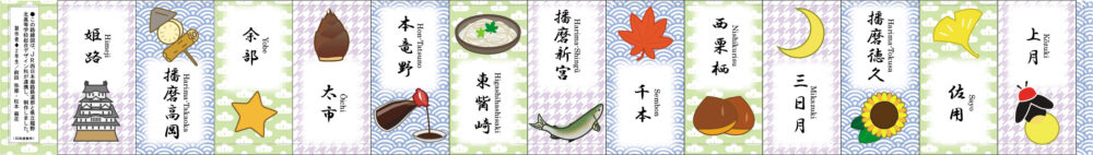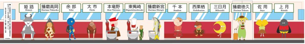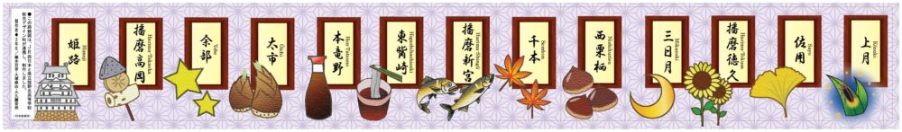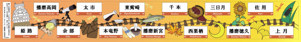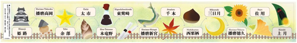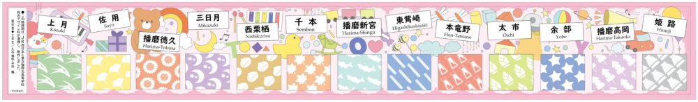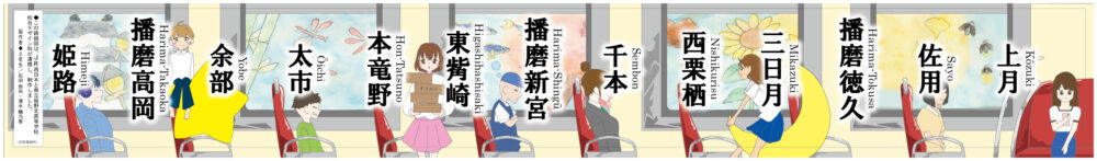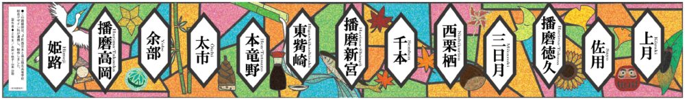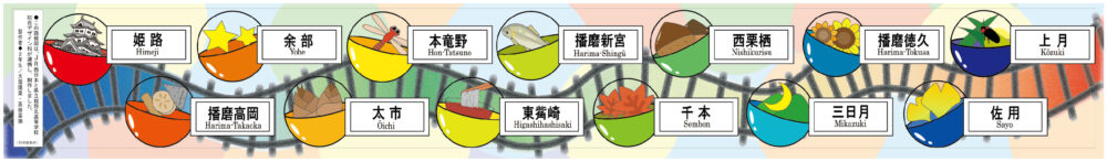 姫新線の利用促進のため、兵庫県立龍野北高等学校総合デザイン科の生徒がJR姫新線車内に掲示する路線図17種類をデザインしました。