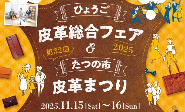 | 内容 | 革のトークショー:俳優の関口メンディーさんによるレザートークショー(土曜日のみ) ニューレザーコンテスト:新素材開発、環境問題への対応など新時代にマッチした革の入賞革の展示 レザーファッションショー:皮革を使って製作した衣装で、2025たつの観光大使や龍野北高校生らがモデルとなる華やかなファッションショー 展示・体験・販売コーナー:国産の天然皮革で作られた靴、カバン、ベルトなどの皮革製品の販売や、たつの市産の天然皮革を使った動物革細工などの製作体験コーナー |