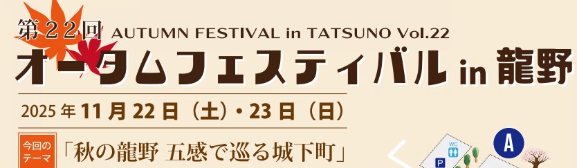 | 主催 | オータムフェスティバルin龍野実行委員会 HPはこちら↓ http://www.tatsuno-af.jp/map.htm |