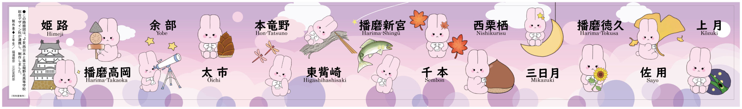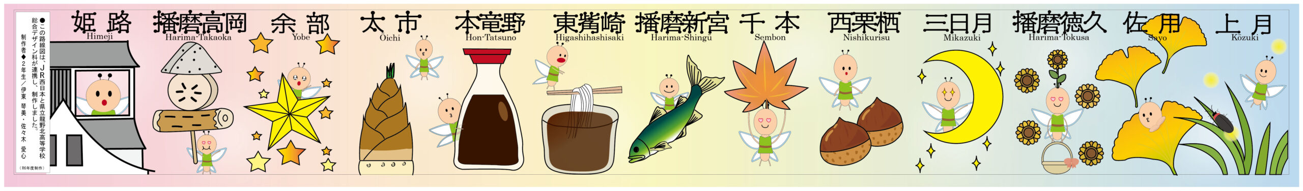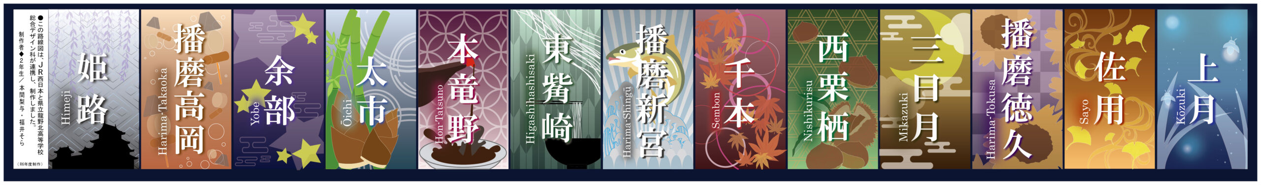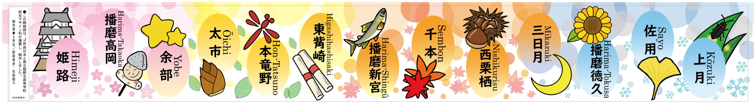 兵庫県立龍野北高等学校総合デザイン科の生徒がJR姫新線の路線図をデザインしました!(令和7年度 車内掲示中)