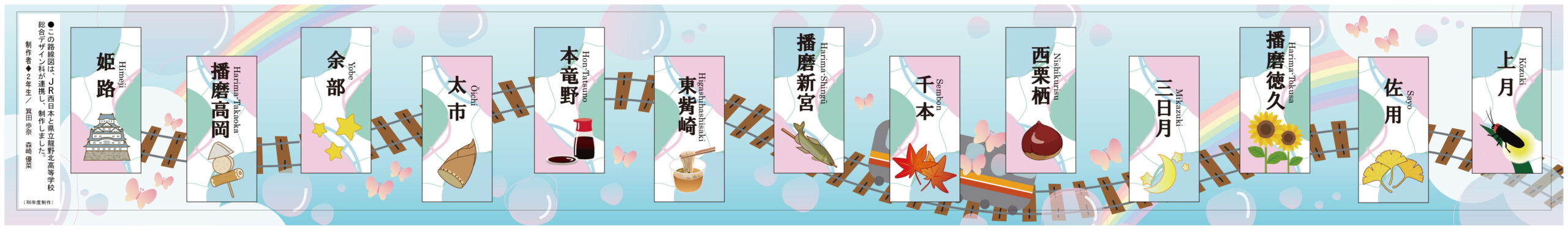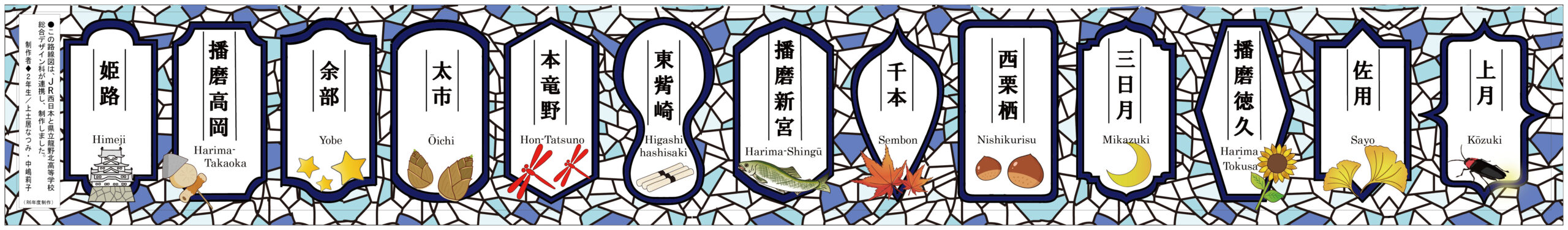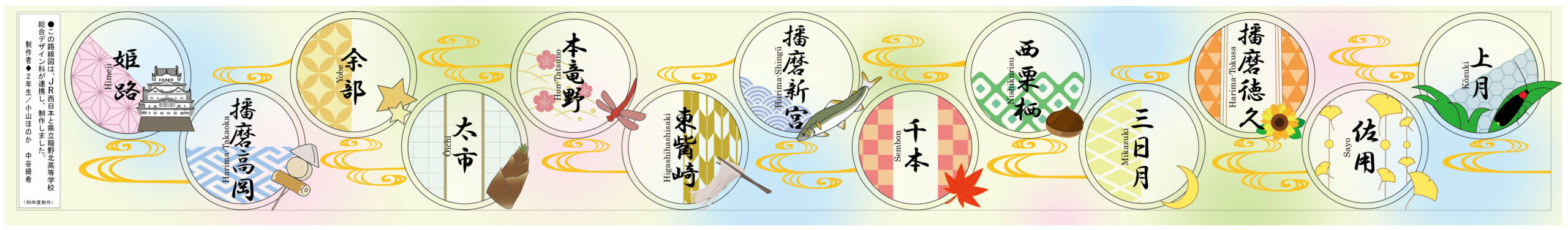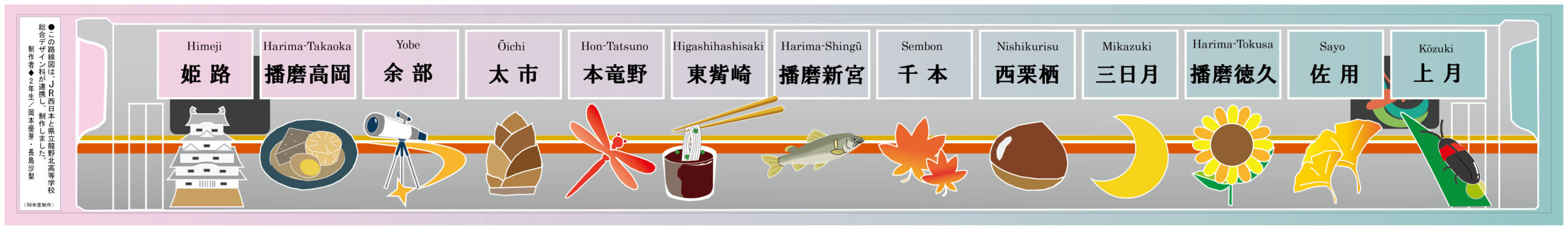 兵庫県立龍野北高等学校総合デザイン科の生徒がJR姫新線の路線図をデザインしました!(令和7年度 車内掲示中)