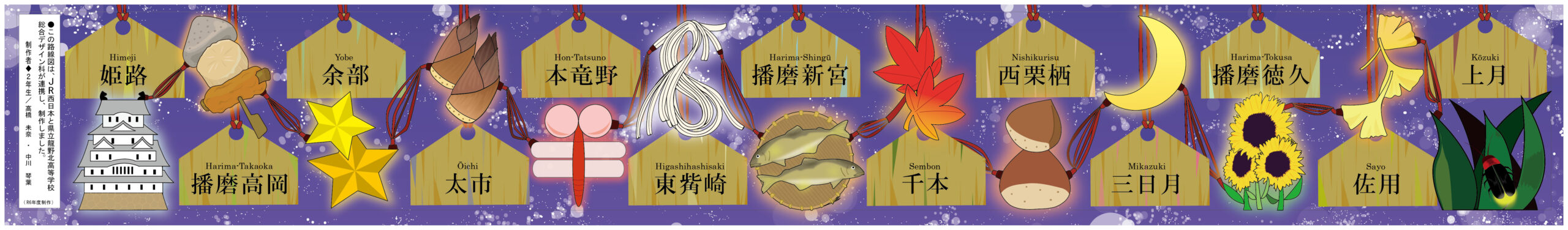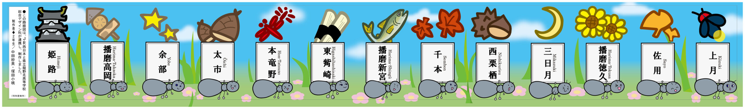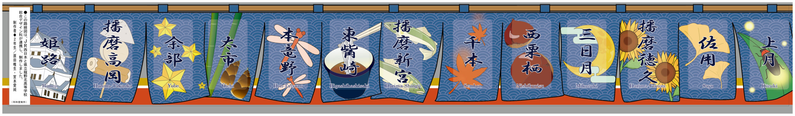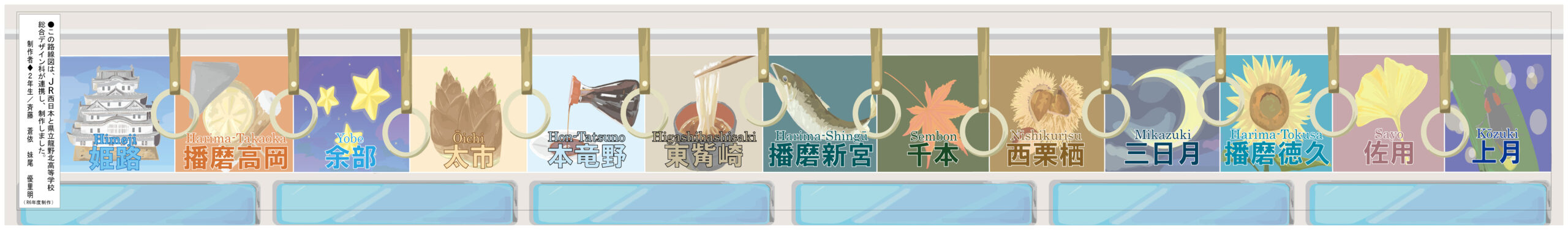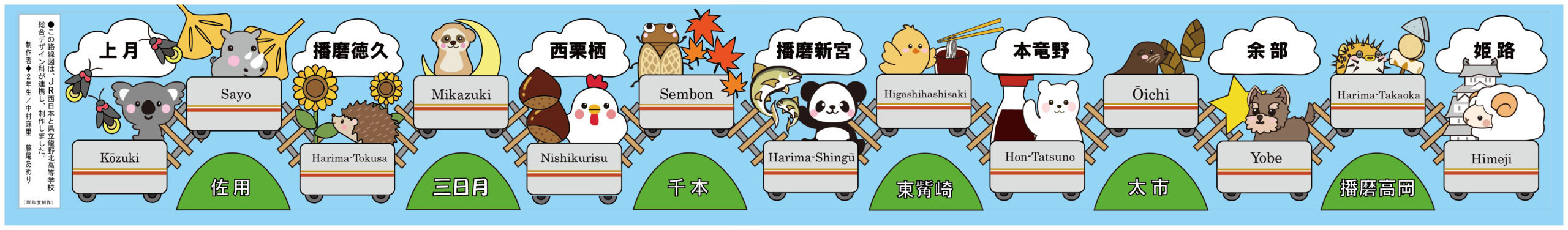 兵庫県立龍野北高等学校総合デザイン科の生徒がJR姫新線の路線図をデザインしました!(令和7年度 車内掲示中)